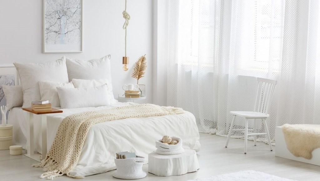 Opt instead for cotton or linen rod curtains so that the light filters naturally but is not blinding. As far as the choice of colour is concerned, white, beige, cream or light grey are preferable… neutral shades that match any colour and any room: dining room, living room, bedroom…