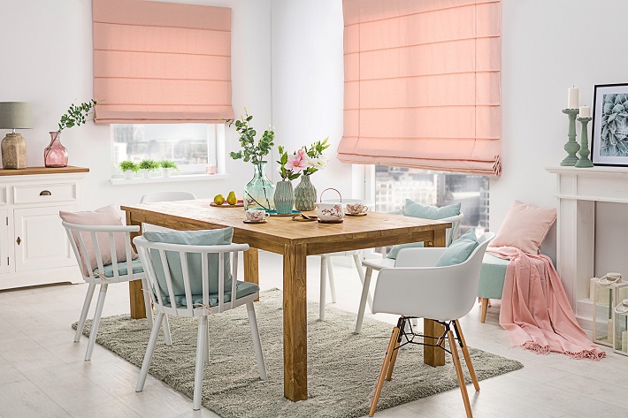 As far as the dining room is concerned, it is better to focus the use of the antique pink colour on accessories and curtains in order to not “suffocate” the environment with an overly warm colour such as antique pink.