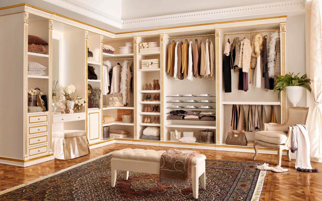 In the walk-in wardrobe you can easily use it as the main colour on all furniture and accessories, the contrast will be produced by the colours of the clothes or the ceiling.