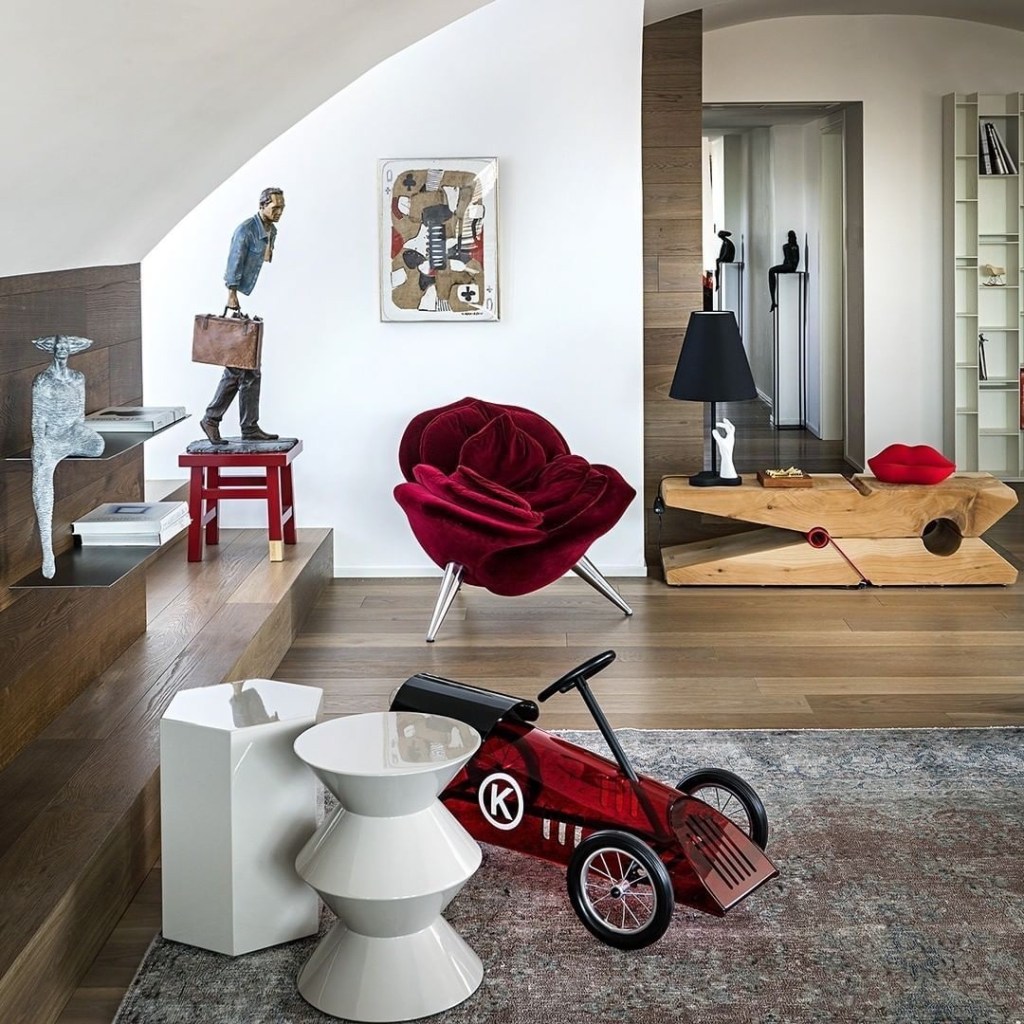 Vermelha, designed by Fernando and Humberto Campana, was created by weaving hundreds of metres of rope onto a steel structure. This sophisticated and unique armchair is perfect for cosy, warm and hygge environments as it creates a pleasant contrast between its ultra-modern style and its famous comfort.