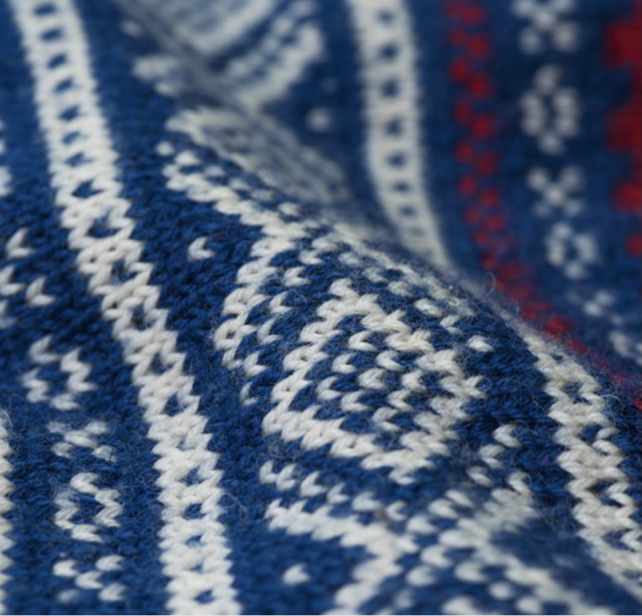 Mariusgenser is a jumper with a special design that has become the symbol of Norway. It is a variation of the “setesdal”, in which the colours of the Norwegian flag – red, white and blue – are used instead of the dotted weave (“lus”) on a white or black background.