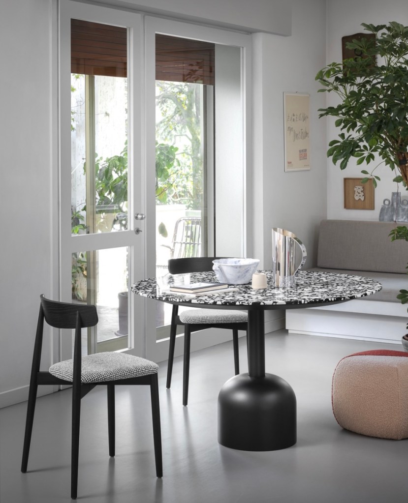 One of the new trends for the 2022 is the bistro table, which is placed within the domestic environment and used as a dining table but also for working in the home office.