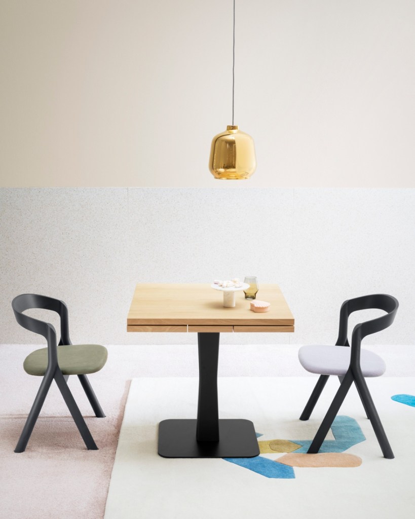 It is recommended to combine this type of table with chairs that are as minimalist as possible, with wooden or metal legs, with the seat upholstered in fabric and matching the finish of the table or creating a strong but pleasant visual contrast.