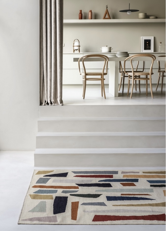 To create this style, rugs are indispensable to add next to the sofa, in the bedroom or even in the living room. Try to follow the same style and therefore the same colour palette for each space. In this way, you will generate visual unity and a pleasing harmony that will not tire the eye.