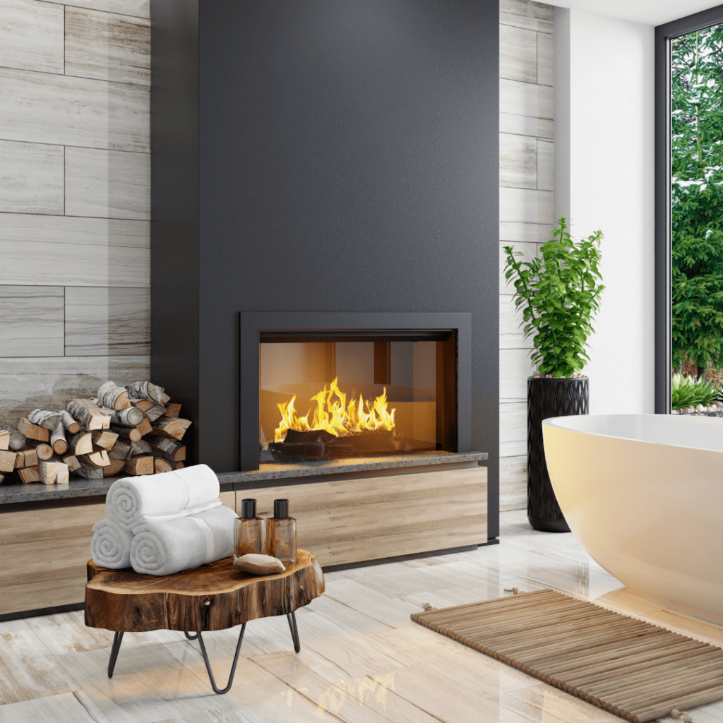 Turn your wall into a cozy retreat with a fireplace. Unleash the beauty of simplicity and warmth in your home. Add character, charm, and functionality to any room, even the bathroom!