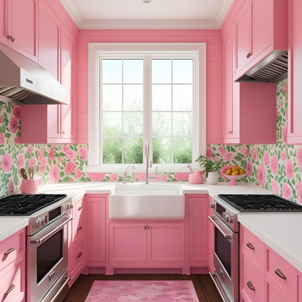 - Backsplash: A pink tiled backsplash can add a pop of color without committing to the entire space.