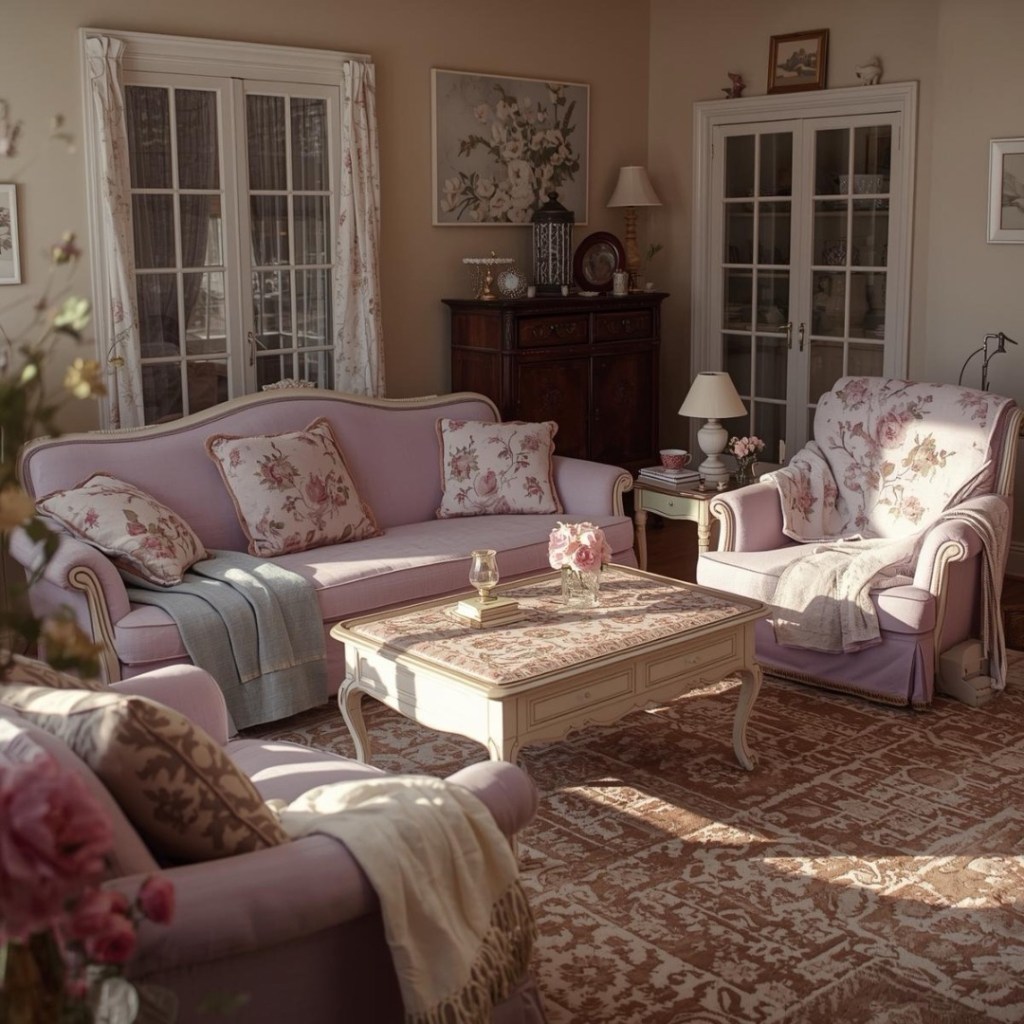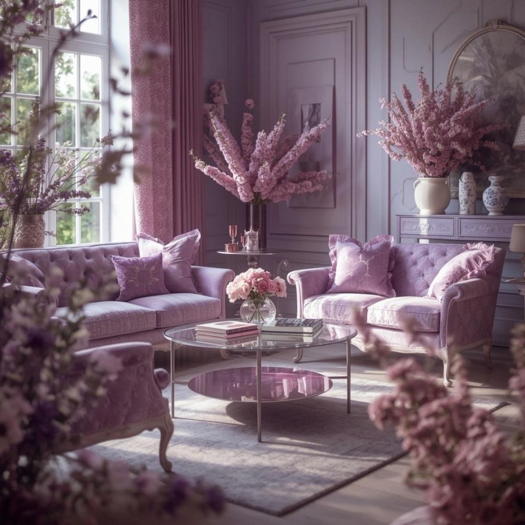 Furniture – A lavender-upholstered armchair or velvet sofa makes for a striking focal point.