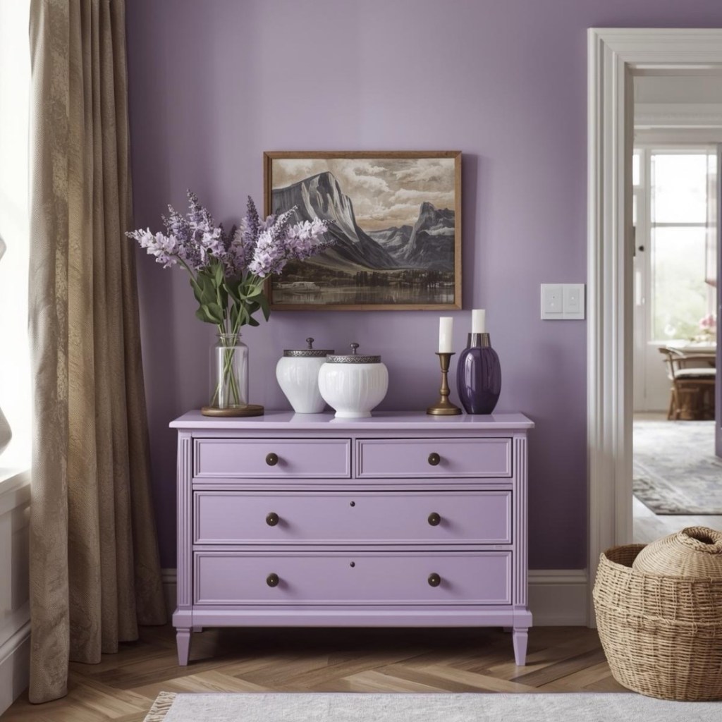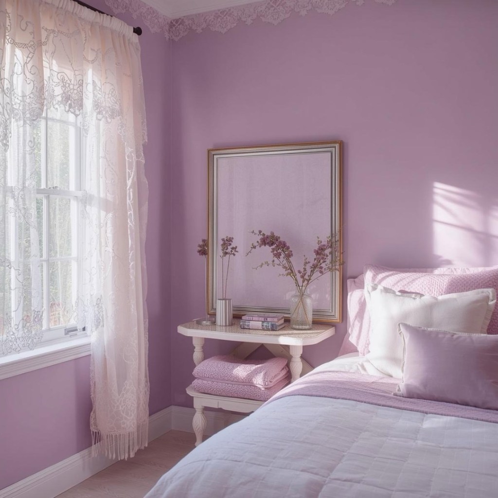 Accent Walls – Paint one wall in a soft lavender to add depth and interest without overwhelming the space.