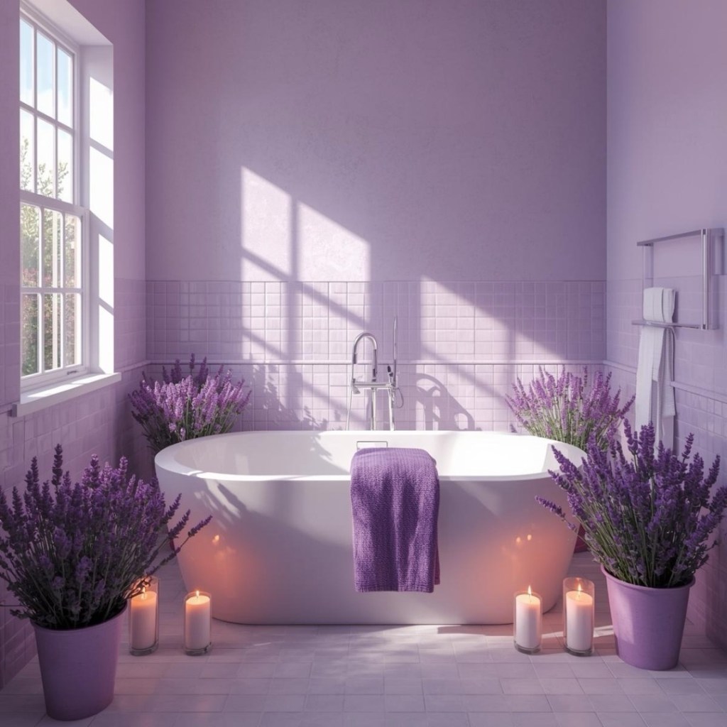 Textiles – Introduce lavender through throw pillows, area rugs, curtains, or bedding. These are easy to swap and instantly uplift a neutral room.